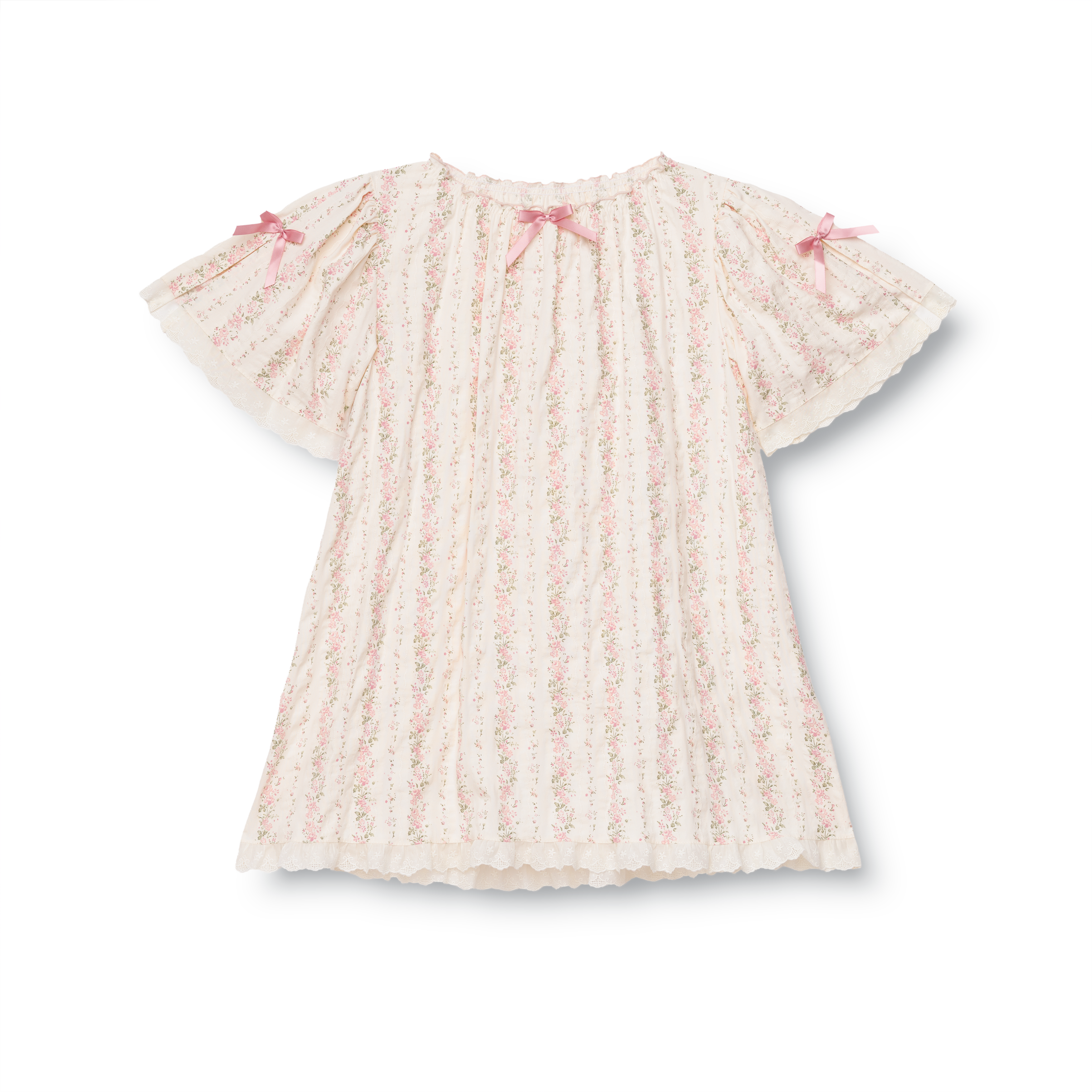 Charming girls' nightdress Airiin features vintage-inspired short sleeves with lace details as well as decorative bow on the front.
