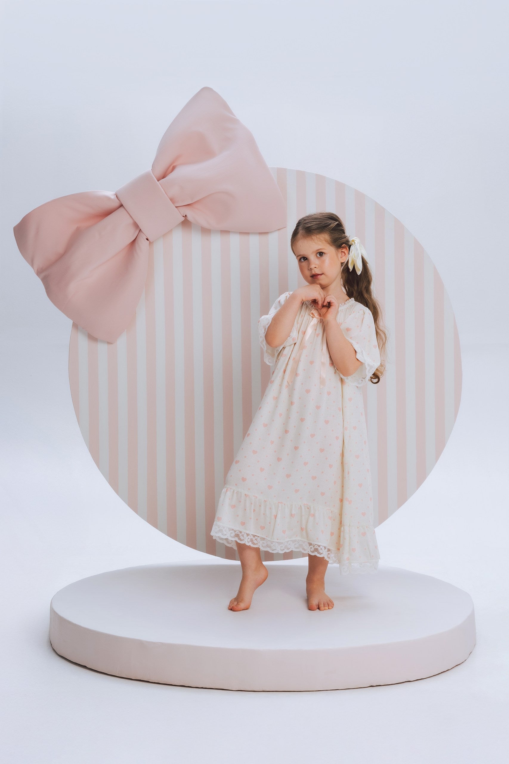 Girls' nightdress Aurora is a truly adorable choice for the little ones. This charming nightdress is complemented with elasticated neckline and lovely lace trimmings on the sleeves.