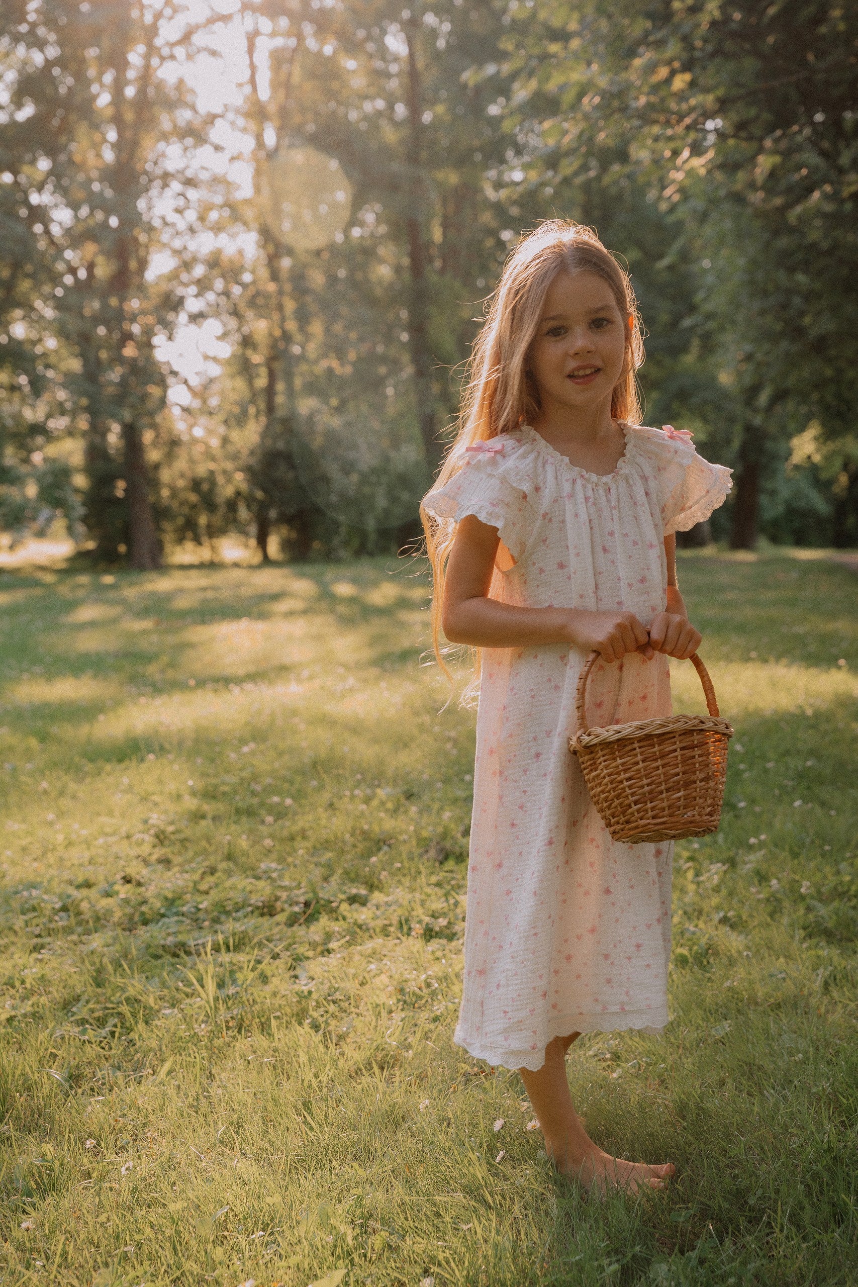 Girls' nightdress Calista is a truly adorable choice for the little ones. This charming nightdress is complemented with elasticated neckline and lovely lace trimmings on the sleeves.