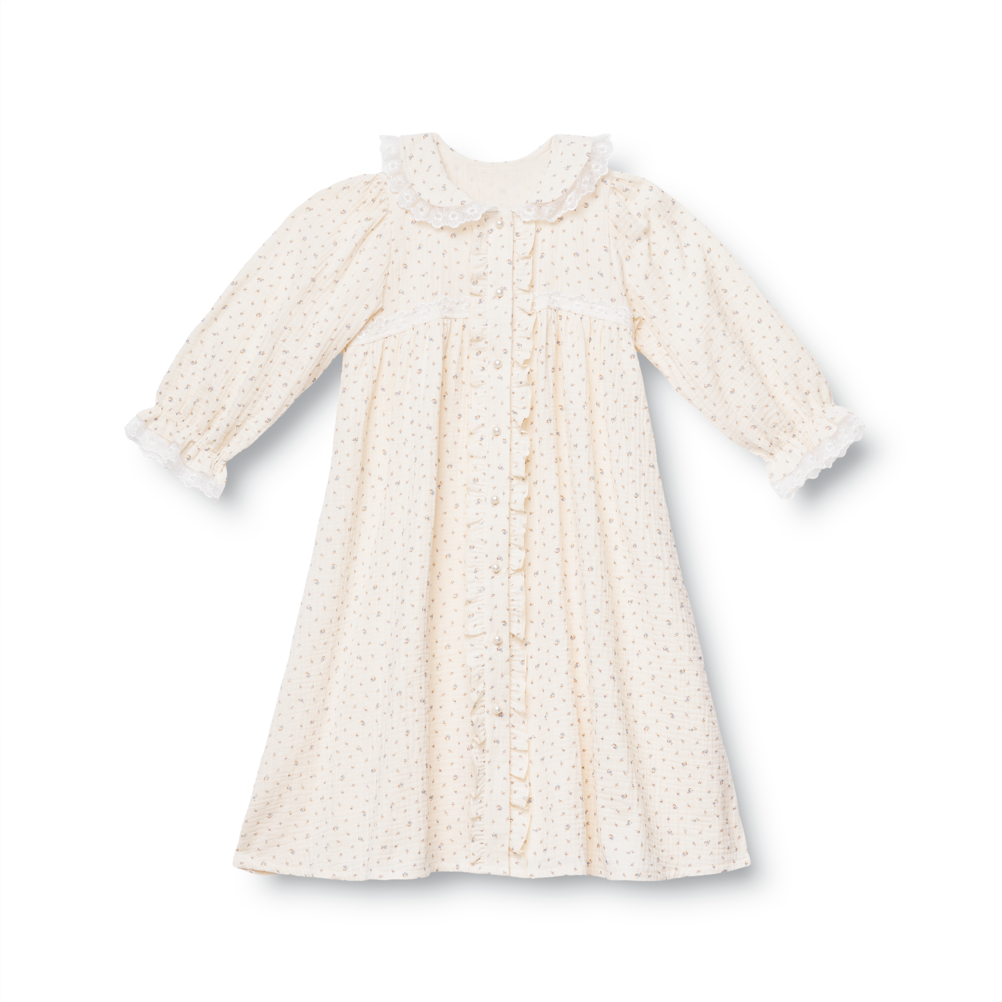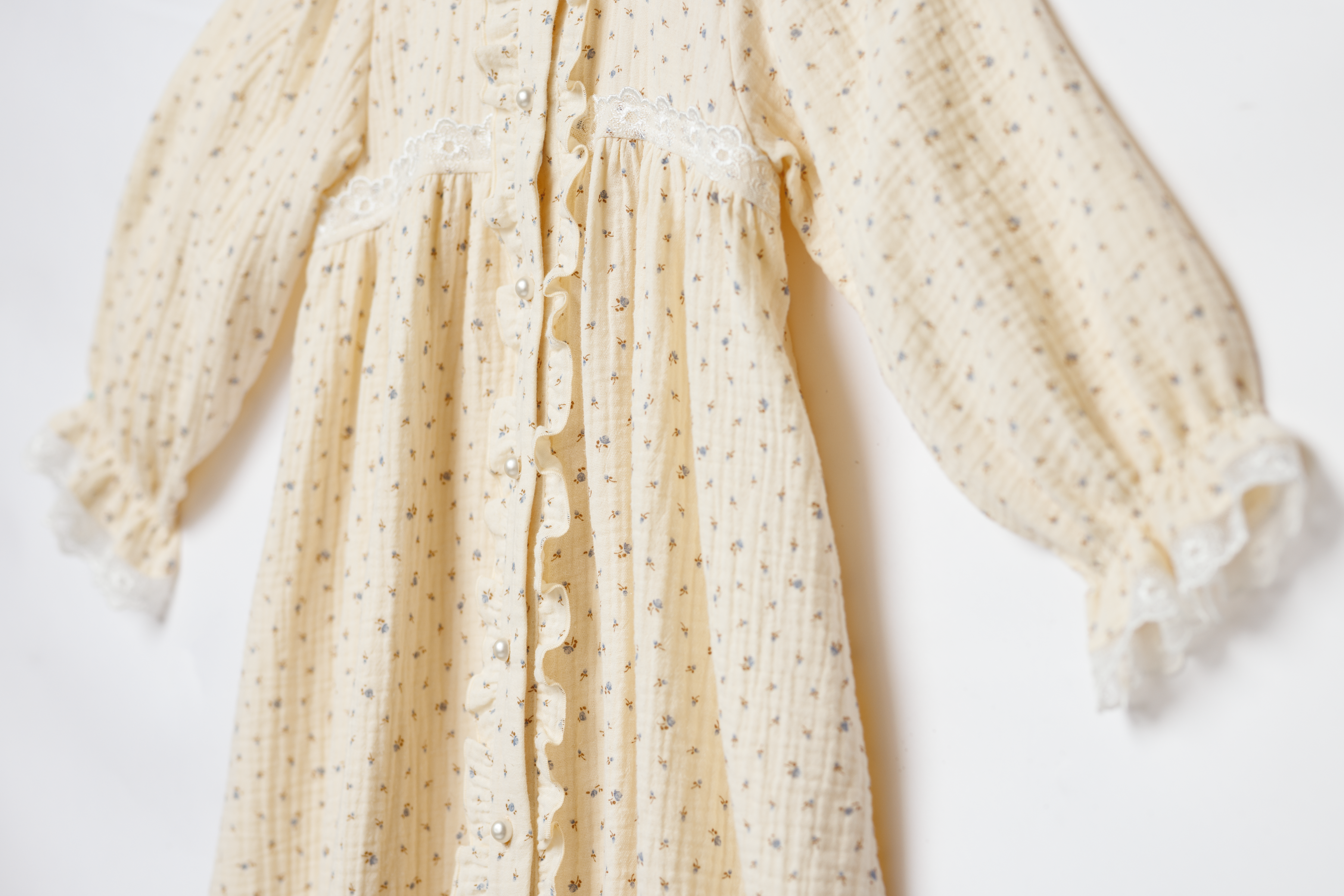 Vintage-inspired girls' muslin dressing gown Ariel has a perfect combination of true comfort and elegant design. This robe is perfect for cozy summer nights. A truly good choice for your little one!